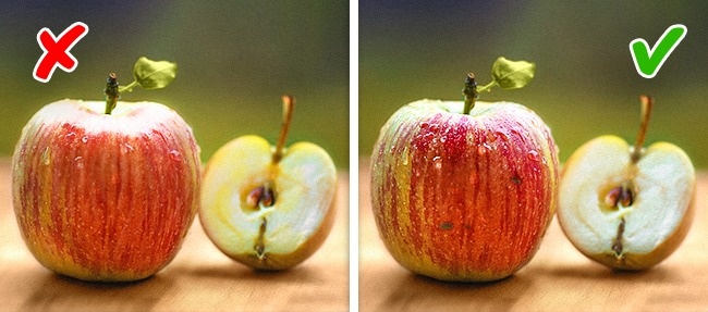 Порада: Щоб перевірити покупне яблуко на наявність препаратів, залийте його окропом. Якщо на шкірці з'явилася масляна плівка, значить, вона оброблена парафіном, змішаним з іншими речовинами.