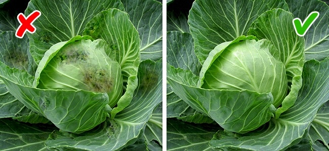 Визначити капусту, в якій немає пестицидів, досить просто. Огляньте сподобався качан і переконайтеся, що на ньому відсутні будь-які плями. Якщо капустяне листя чисті, тонкі і рівно пофарбовані, то все в порядку — можна купувати.