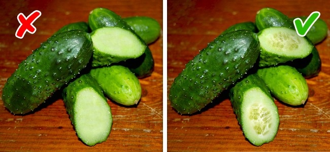 Купуючи огірки поза сезону, ви можете бути впевнені в тому, що вони оброблені парафіном. Є такі огірки неочищеними не можна. Якщо ж ви розріжете огірок і всередині нього не виявиться насіння, то сміливо викидайте все, що купили, — у таких плодах велика кількість небезпечних речовин.