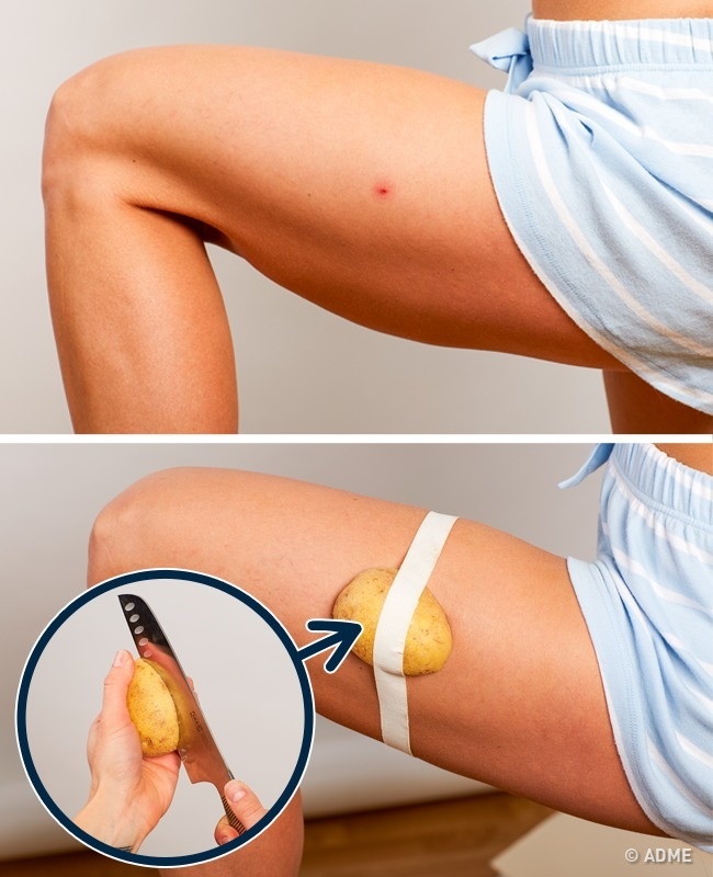 Картопля зменшує свербіж, запалення і допоможе зволожити рану, що підвищує швидкість загоєння. Це допомагає при будь-яких укусах і подразненнях.