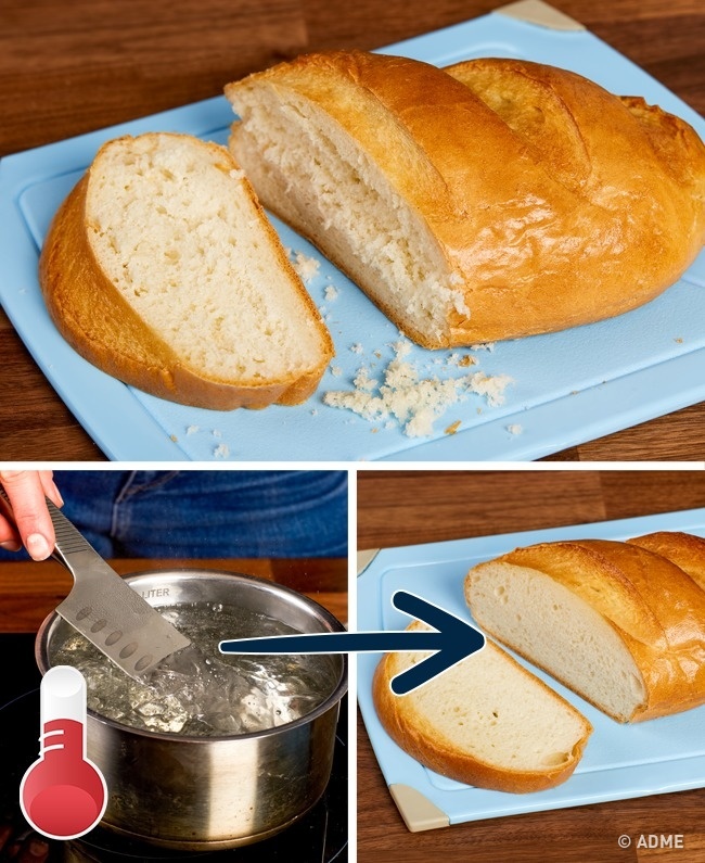 № 8. Щоб хліб не кришився, опустіть ніж в окріп
