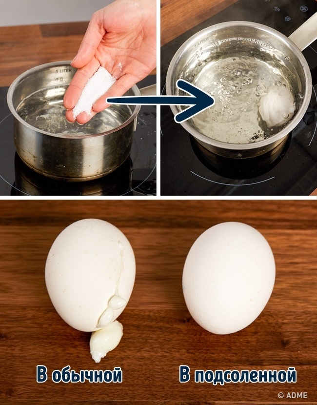 № 7. Яйця не тріснуть і білок не витече при варінні, якщо опустити їх у підсолену воду