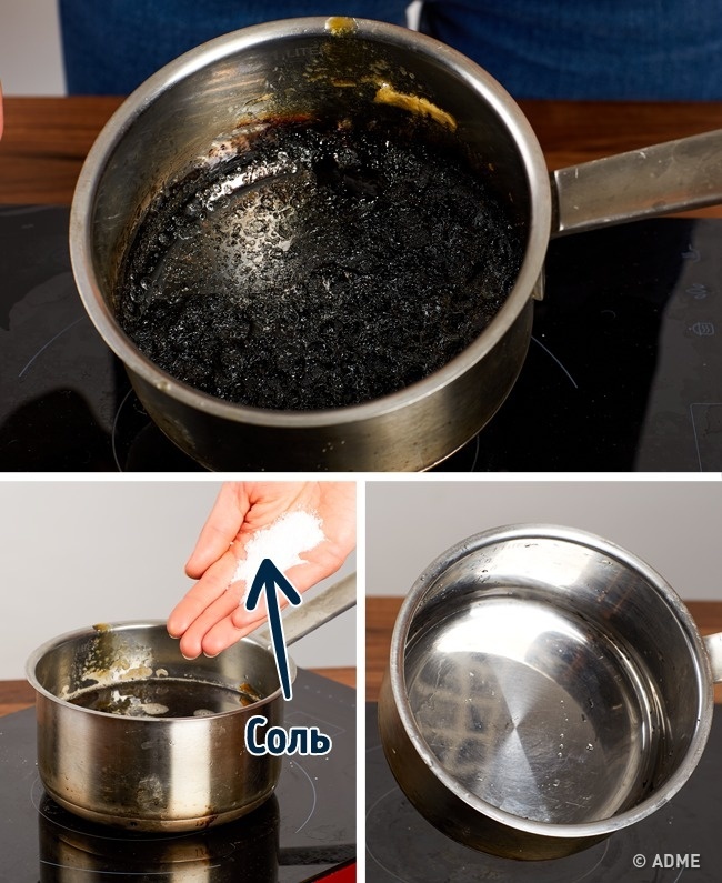 № 5. Пригоріла каструлю можна легко очистити, прокип'ятити в ній сольовий розчин