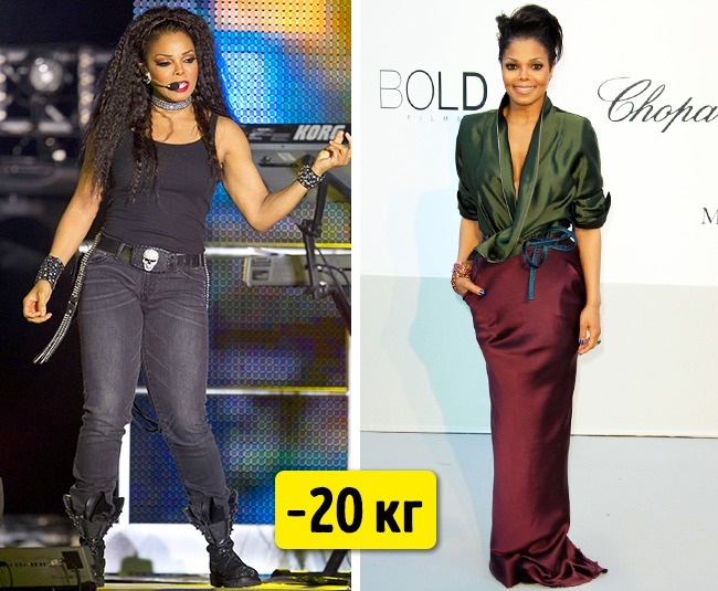 - Джанет Джексон знає толк в ефективних способах і в короткі терміни призводить себе в приголомшливу форму. Основний акцент вона робить на регулярні активні заняття спортом: 45 хвилин в день в залі 5 днів в тиждень. Джанет не прихильниця дієт, вона віддає перевагу виключно здорової їжі.