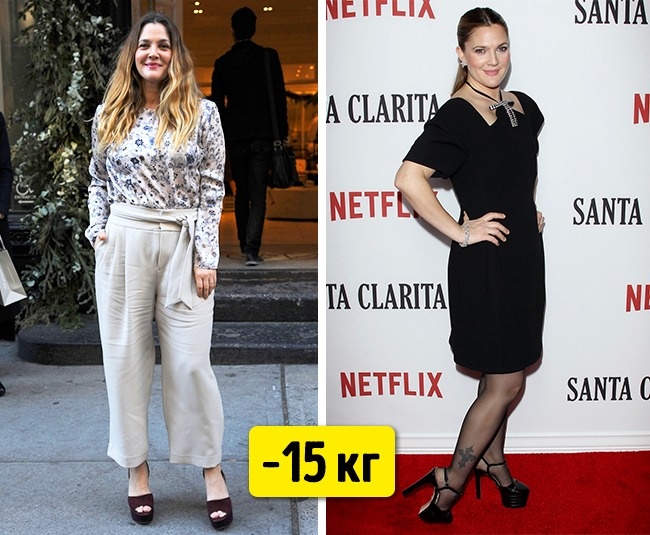 - Дрю Беррімор, щоб отримати чергову бажану роль, довелося розпрощатися із зайвими сантиметрами на талії. Актриса віддала перевагу правильному харчуванню. А ще Дрю займалася «гарячої йогою», працювала на тренажерах, здійснювала тривалі прогулянки і навіть відвідувала класи танців в стилі хіп-хоп.