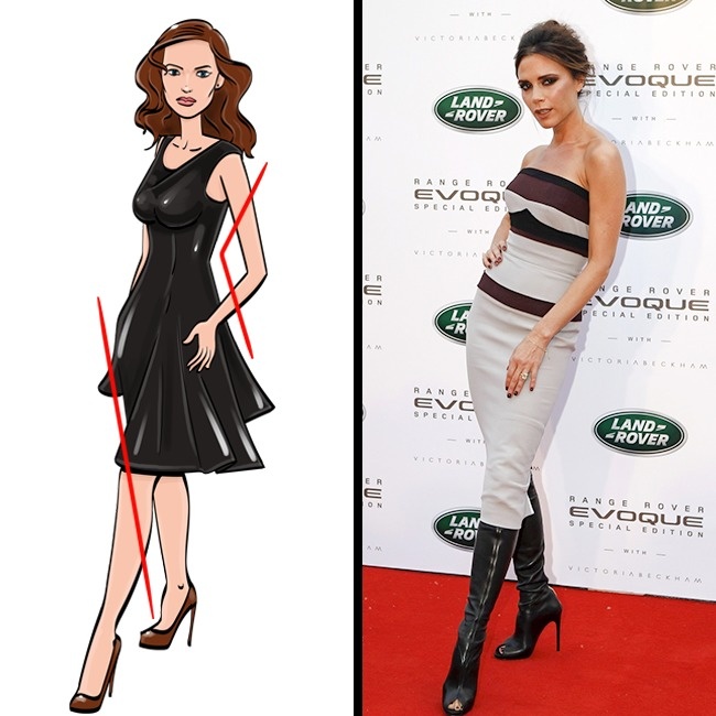 Фірмова поза Вікторії Бекхем. Положення впівоберта до камери, опора на праву ногу, ліва відставлена вперед. Це неймовірно зваблива поза, яка виглядає чудово з будь-якого боку. Візуально зменшує стегна і допомагає здаватися стрункішою.