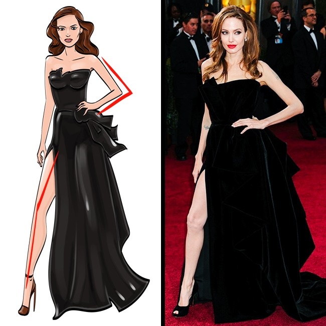 Цю позу назвали в честь Анджеліни Джолі ще в 2012 році. Поза стала настільки популярною, що у неприродно виставленої ноги актриси з'явився особистий аккаунт в Twitter. Сміх сміхом, але цю позу часто використовують на червоній доріжці, адже вона відмінно демонструє вбрання і візуально подовжує ноги.