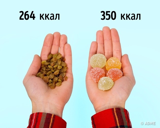 100 г родзинок = 100 г мармеладу
