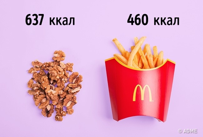 Жменя волоського горіха (100 г) = велика картопля фрі