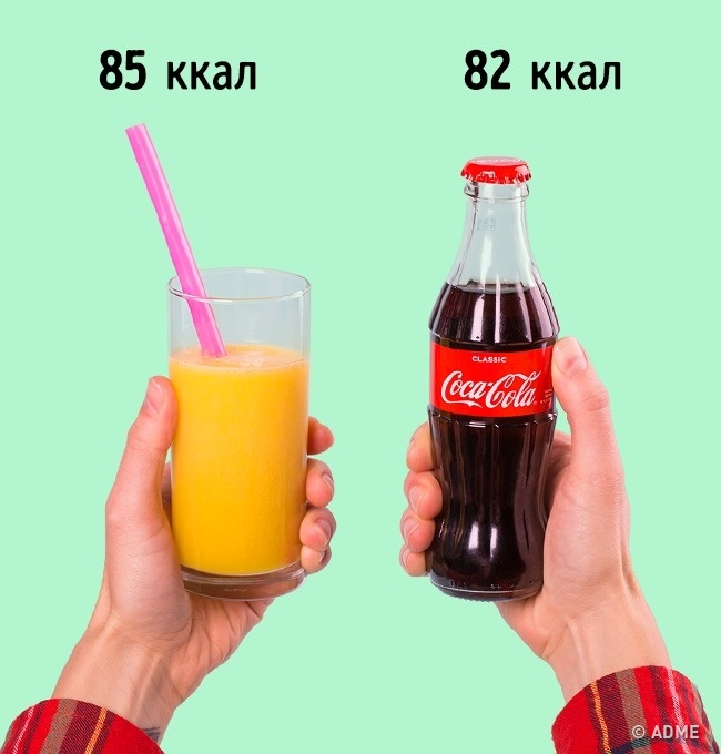 Стакан мультифруктового смузі = маленька пляшка Coca-Cola