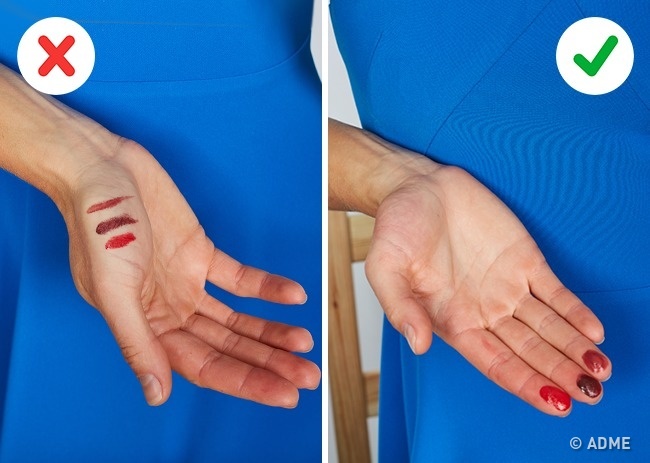 № 10. Щоб підібрати правильний відтінок помади, нанесіть її на подушечки пальців