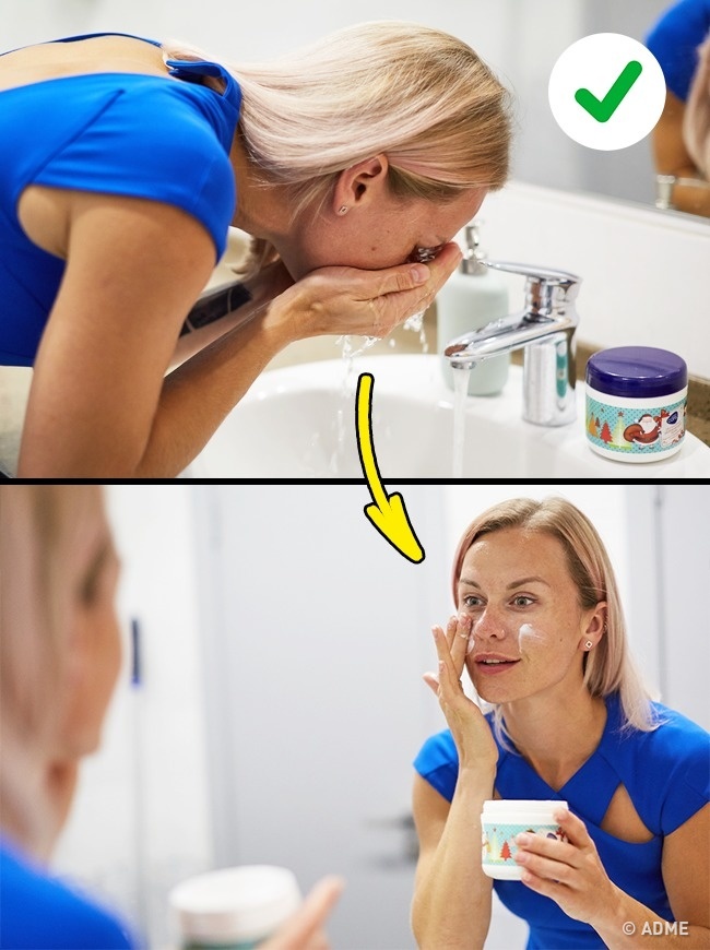 Такий трюк дуже популярний в Кореї. Все просто. Після того як ви вмили обличчя, не витирайте його рушником, а відразу наносити зволожуючий крем. Так шкіра краще вбирає складу крему, стає м'якше і ніжніше.