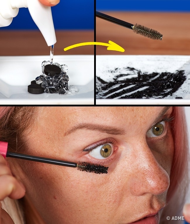 Візьміть кілька таблеток активованого вугілля і гарненько подрібніть. Потім додайте трохи гелю алое і перемішайте. Така туш добре нафарбує вії, при цьому не зашкодить очам і шкірі.