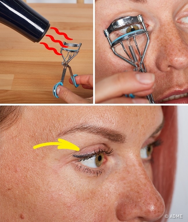 Перш ніж завивати вії керлером, потримайте його під гарячою водою або феном буквально 1 хвилину. Так вигин вій збережеться набагато довше.
