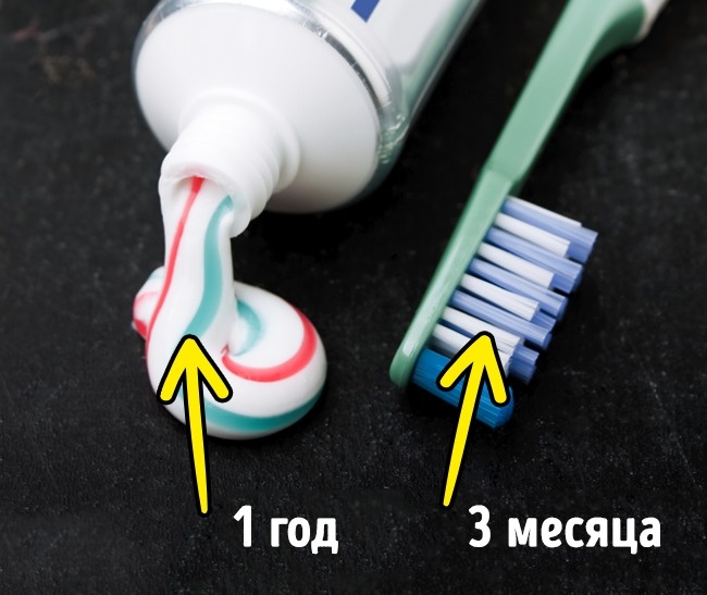 Зубну щітку необхідно міняти кожні три місяці, щоб не перетворювати її в інкубатор бактерій. А зубна паста після відкриття зберігається не більше року, так що якщо у вас є маленький тюбик для подорожей — перевірте термін придатності.