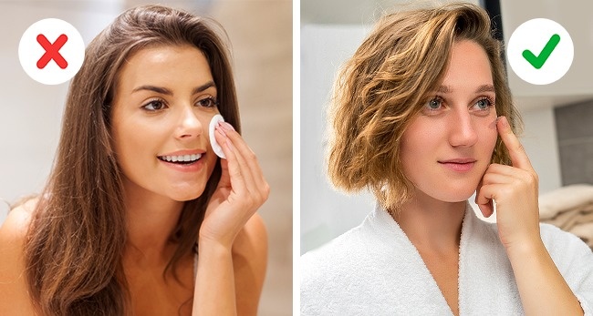 Наносячи тональний крем пальцями, ви не тільки заощаджуєте продукт, але й посилює ефект. Адже ватні спонж і диски вбирають в себе набагато більше, ніж віддають. Це правило стосується і тоніка для обличчя: досить крапнути трохи на долоню і вмитися.