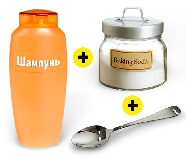 Часом буває дуже непросто видалити залишки засобів для укладки волосся. Звичайний шампунь не завжди в силах впоратися з цим завданням. Але, якщо ви додасте в нього ложку харчової соди, це допоможе повністю видалити залишки гелю, мусу, лаку та інших засобів і поверне волоссю свіжий вигляд.