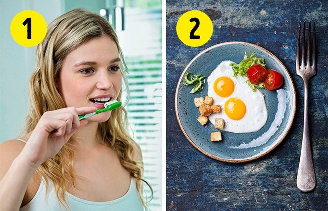 За ніч в порожнині рота скупчується велика кількість бактерій. Якщо ви візьмете в звичку чистити зуби до ранкового прийому їжі, ви не «з'їсте» весь цей наліт разом зі сніданком. Доктор Лансер зазначає, що шкіра його пацієнтів, які дотримуються цього правила, виглядає краще порівняно з шкірою тих, хто відкладає це питання на потім.