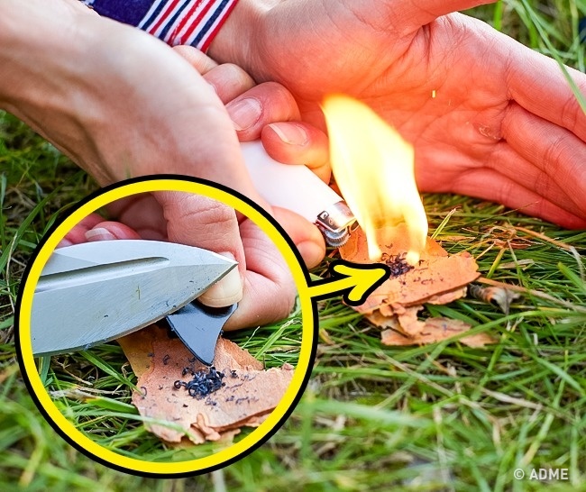 № 10. Відскребіть з медіатора ножем трохи стружки і підпаліть, щоб добути вогонь швидко