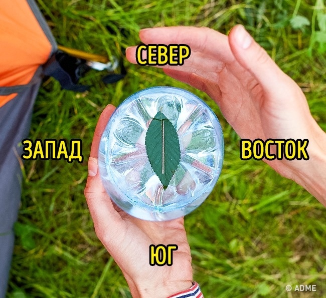 Якщо ви загубилися, то зробити саморобний компас просто. Візьміть голку або шпильку і потріть один кінець з щільної тканини (по джинсам). Покладіть голку в воду на листок дерева. Заряджена сторона голки буде вказувати на північ.
