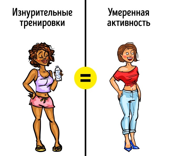 Відмовтеся від занять в залі, якщо для вас це подібно тортурам. Будь-яка регулярна фізична активність буде мати такий же успіх. Плавання, танці, походи, активний шопінг, прогулянки з дитиною або щось ще. Головне — не сидіти на місці і отримувати задоволення.