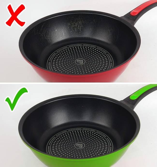 Не нагрівайте антипригарну посуд вище 260 градусів, а також звертайтеся з каструлями і сковорідками акуратно, щоб не пошкодити: не наливайте холодну воду в розігріту посуд і дочекайтеся її повного остигання, перш ніж мити.