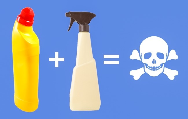 При прибиранні ми часто використовуємо сильні хімічні речовини. Намагаючись відтерти стійкі забруднення може здатися, що змішати кілька чистячих засобів буде ще ефективніше. Але такі суміші, вступивши в хімічну реакцію, виділяють стільки токсичних газів, що це може призвести до сильного хімічного отруєння. Особливо небезпечно змішувати хлорний відбілювач з чимось, крім чистої води.