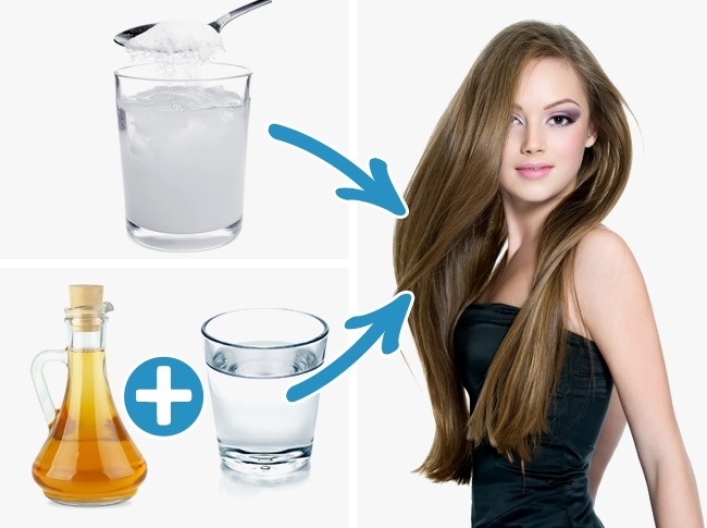 Змішайте 9 ст. л. води і 3 ст. л. соди, наносьте суміш за допомогою пляшки з аплікатором на коріння волосся, помасажуйте. Потім нанесіть суміш з води і яблучного оцту, помасажуйте і змийте. Така суміш робить волосся блискучими і здоровими.