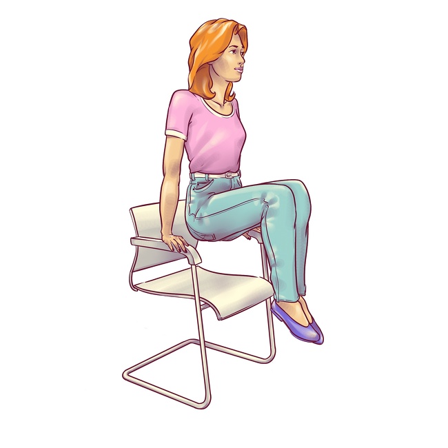 - Сядьте на стілець і зіпріться руками об підлокітники.