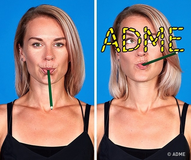 Сидячи на стільці з рівною спиною, візьміть олівець і міцно стиснути його губами. Тепер, не рухаючи головою, починайте виписувати олівцем у повітрі своє ім'я або окремі літери. Виконуйте вправу не менше 3 хвилин, потім зробіть перерву і повторіть ще пару разів.