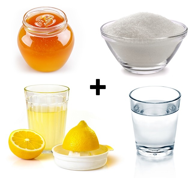 Змішайте 1/4 склянки меду, 1,5 склянки цукру, 1/4 склянки соку лимона і 1/2 склянки води. Варіть на повільному вогні до повного розчинення цукру і появи на поверхні суміші бульбашок. Остудіть суміш і нанесіть на шкіру, де треба видалити волосся, потім накрийте ділянку бавовняною тканиною, розгладьте і різким рухом зніміть матеріал.