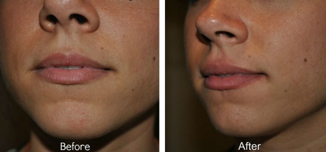 Результат: Потріть губи вологою зубною щіткою з сумішшю цукру і меду протягом 2 хвилин, змийте засіб і прополощіть щітку, а потім знову пройдіться по губах. Ви отримаєте результат, як у дівчини на фото, всього за 1 застосування: губи стануть м'якше, швидше заживуть тріщинки, піде лущення.