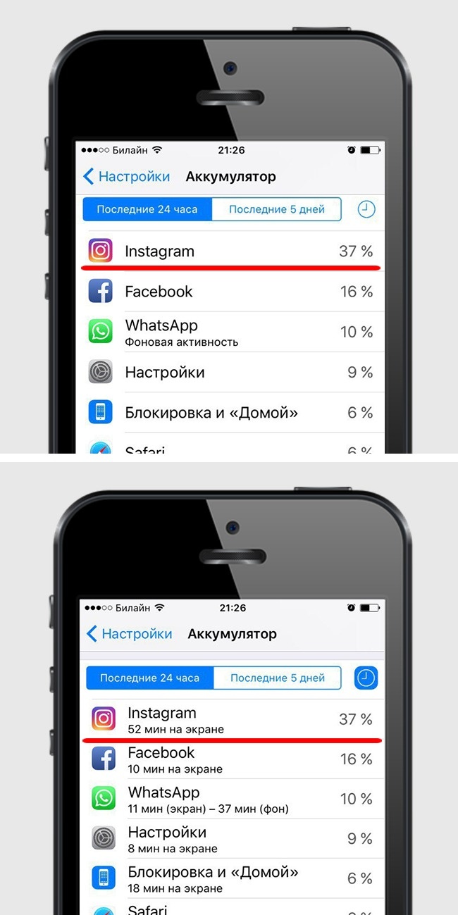 - Зробити це в iOS простіше простого: «Налаштування» — «Акумулятор» і натиснути на клавішу циферблата, що праворуч від графи «Останні 7 днів». Перед вами з'явиться перелік найбільш затребуваних додатків в порядку убування. А ось для Android доведеться встановити додаток (так-так, ще одне), наприклад, Instant.