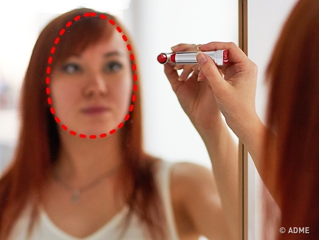Візьміть смывающийся маркер, помаду, мило або олівець. Встаньте перед дзеркалом на відстані витягнутої руки. Не відхиляючись, окресліть контур особи, починаючи від підборіддя і закінчуючи лінією росту волосся. Зробіть крок назад і подивіться на отриману форму.
