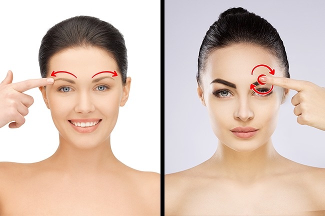 За допомогою чистої щіточки від туші гарненько розчешіть брови вгору і вниз, від перенісся до скроні і в зворотний бік. Помасажуйте бровки пальчиками легкими і потім інтенсивними рухами погладжують, підсильте точкове вплив, пощипывайте. Натисніть на брову і, не зрушуючи пальця, починайте робити кругові рухи, поступово збільшуючи радіус. Такий масаж дозволить не тільки поліпшити приплив крові і допомогти засвоєнню поживних речовин, але і усуне головні болі і напругу очей.