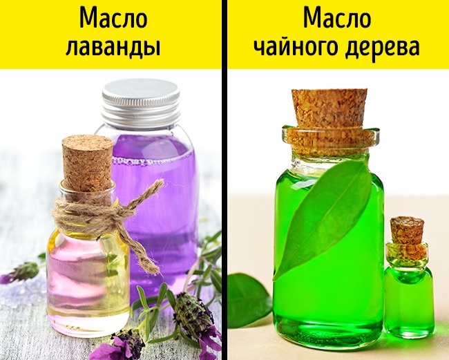 Найбільш ефективні масло чайного дерева і ефірне масло лаванди, які відомі заспокійливими, зміцнюючими, зволожуючими властивостями. Їх краще використовувати разом з базовим маслом (кокосовим, оливковою, касторовою) і обов'язково протестувати на алергічну реакцію на згині ліктя. Наносьте суміш з ефірного та базового масла на брови щодня, злегка масажуючи.