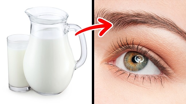 Молоко містить білок, вітаміни групи В, молочні кислоти і кальцій, які відновлюють, захищають і стимулюють вироблення колагену. Занурте в незбиране молоко ватний тампон і протріть брови, як в цьому відео. Дайте молоку висохнути і потім змийте його вашим засобом для вмивання.