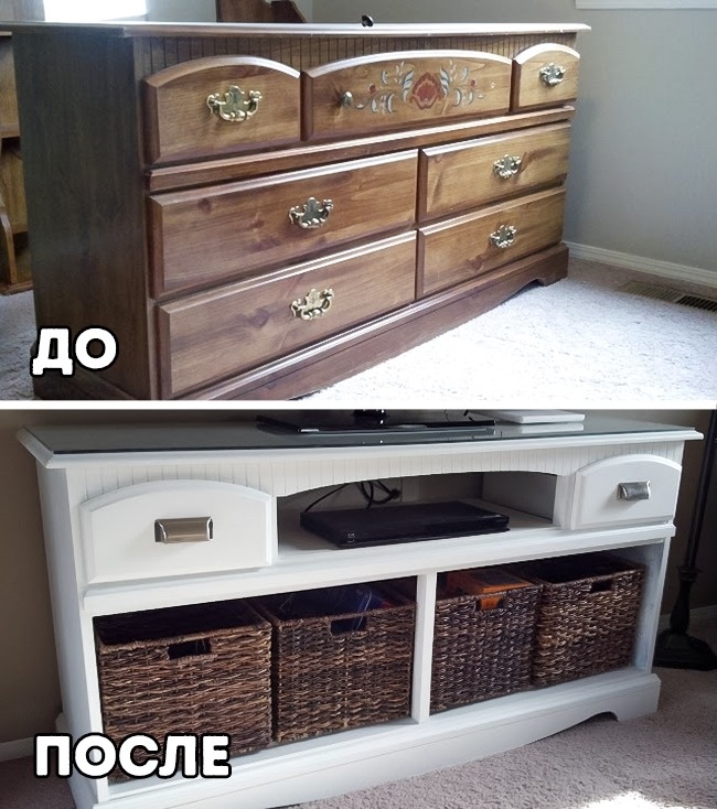 Меблі можна легко перетворити майже до невпізнання, заодно змінивши її призначення. Загляньте в блозі ATTHEPARK'S до Джулі Парк (Julie Park), якщо сумніваєтеся: зі старого комода вийшла відмінна ТВ-стійка.