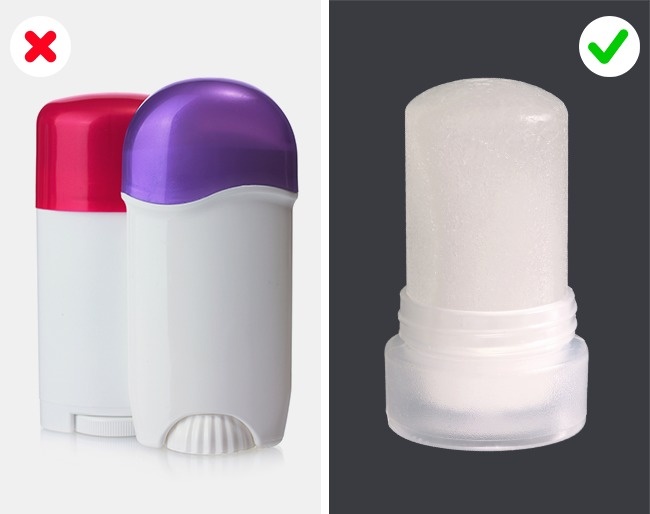 Мінеральний дезодорант-кристал — це натуральний аналог звичайних антиперспірантів. Він нічим не пахне, не залишає слідів на одязі і складається з квасцов (вони ж кристали алунита). Цей мінерал має антисептичні та антибактеріальні властивості, завдяки їм шкіра тонізується, діаметр потових залоз зменшується, а запах зникає. Щоб скористатися кристалом, потрібно змочити його водою і протерти пахвові западини. Він не забиває пори, а вистачає його на 1-2 роки.