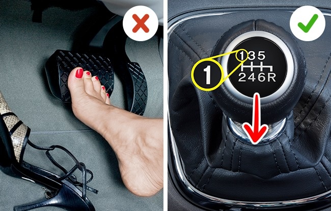 Багато хто весь час тримають ногу на педалі гальма під час руху вниз, щоб бути готовими загальмувати в будь-який момент. Це призводить до перегріву в гальмівній системі і зносу гальмівних колодок і дисків. Замість цього потрібно переключитися на більш низьку передачу, щоб відбулося гальмування двигуном.