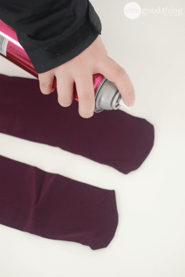 Часто стикаємося з проблемою з'їжджають з п'яти шкарпеток. Щоб це вас більше не турбувало, просто збризніть шкарпетки лаком для волосся.