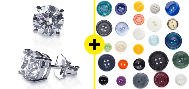 Щоб не втратити маленькі сережки, можна взяти звичайні гудзики потрібного розміру і в отворах закріпити прикраси.