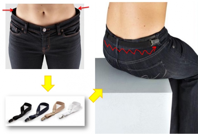 Підтяжки і джинси — класична пара. Але от разом вони можуть працювати ще й у дуже незвичному ключі. Якщо джинси широкі в талії, закріпіть підтяжки ззаду за шлевкі — і ви отримаєте ідеально сидять джинси.