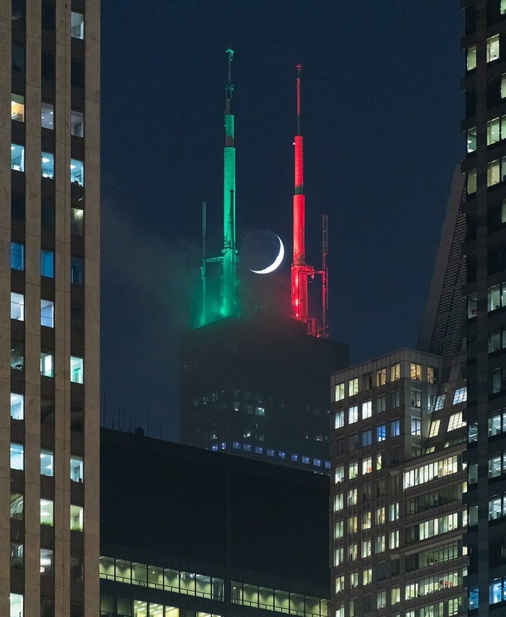 Півмісяць між антенами хмарочоса Уілліс-тауер у Чикаго