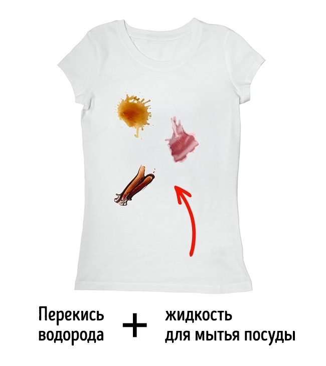 Для того щоб отримати універсальний засіб для виведення плям, змішайте в однакових пропорціях рідина для миття посуду і перекис водню. Нанесіть суміш на пляму, і воно тут же почне зникати.