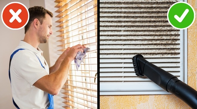 - Миття жалюзі і вентиляційних решіток: перед миттям ретельно пропилососьте жалюзі та решітки на мінімальній потужності пилососа.