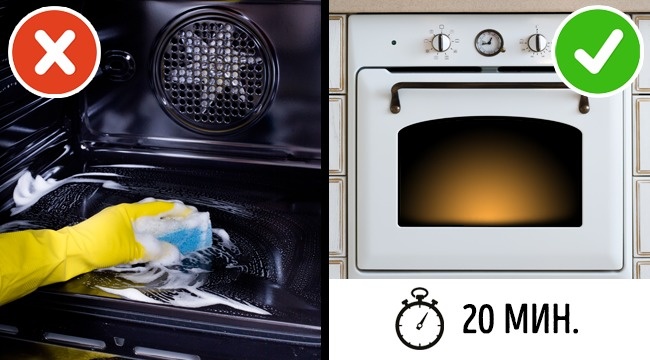 - Чищення духовки: для легкого видалення нагару і жиру перед нанесенням засобу прогрійте духовку протягом 20 хвилин.