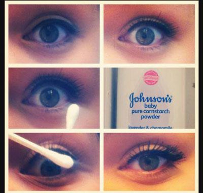 - Озброїтеся ватною паличкою і нанесіть на вії дитячу присипку.
