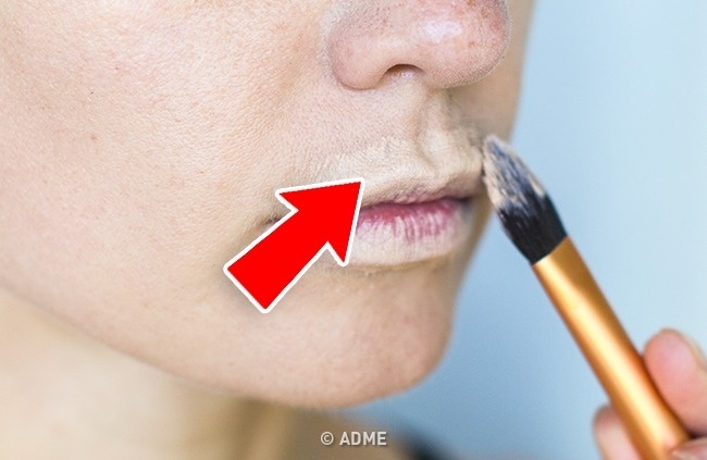 - Обведіть контур губ консилером, як би «стираючи» природну лінію, і розтушуйте засіб.