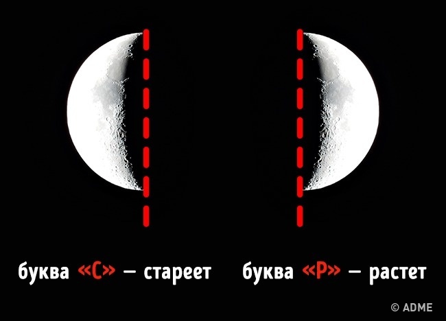 Щоб пояснити дитині, зростає місяць або убуває, попросіть його «приставити» палець до півмісяця на небі. Якщо вийшла буква «Р», місяць росте, якщо «З» — убуває.
